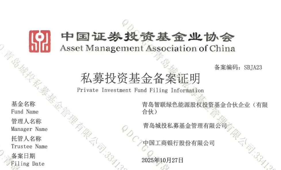 市級基金改革首單落地!青島城投發(fā)起組建的智聯綠色能源基金成功備案